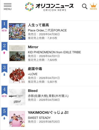 | オリコンデイリーチャート1位 |
